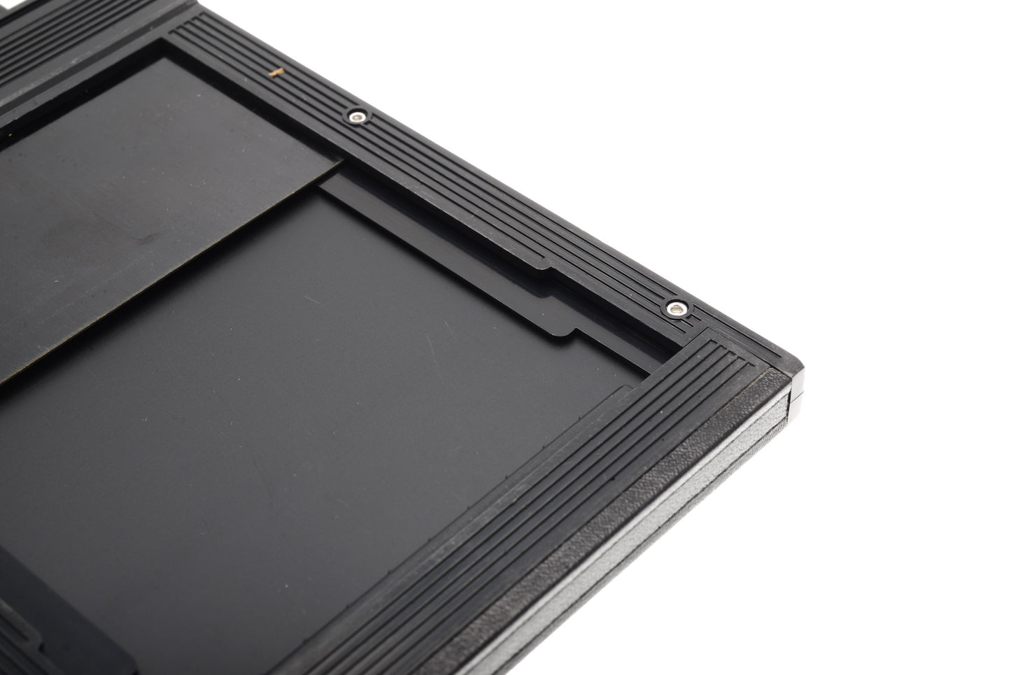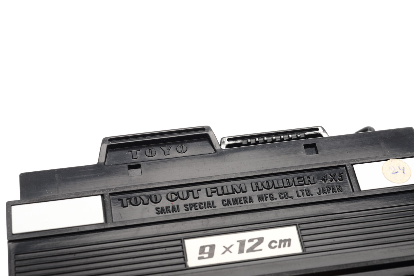 9x12cm sheet film holder made by Toyo. Each holder can hold two sheets of film, one on each side. Plastic body available in black.