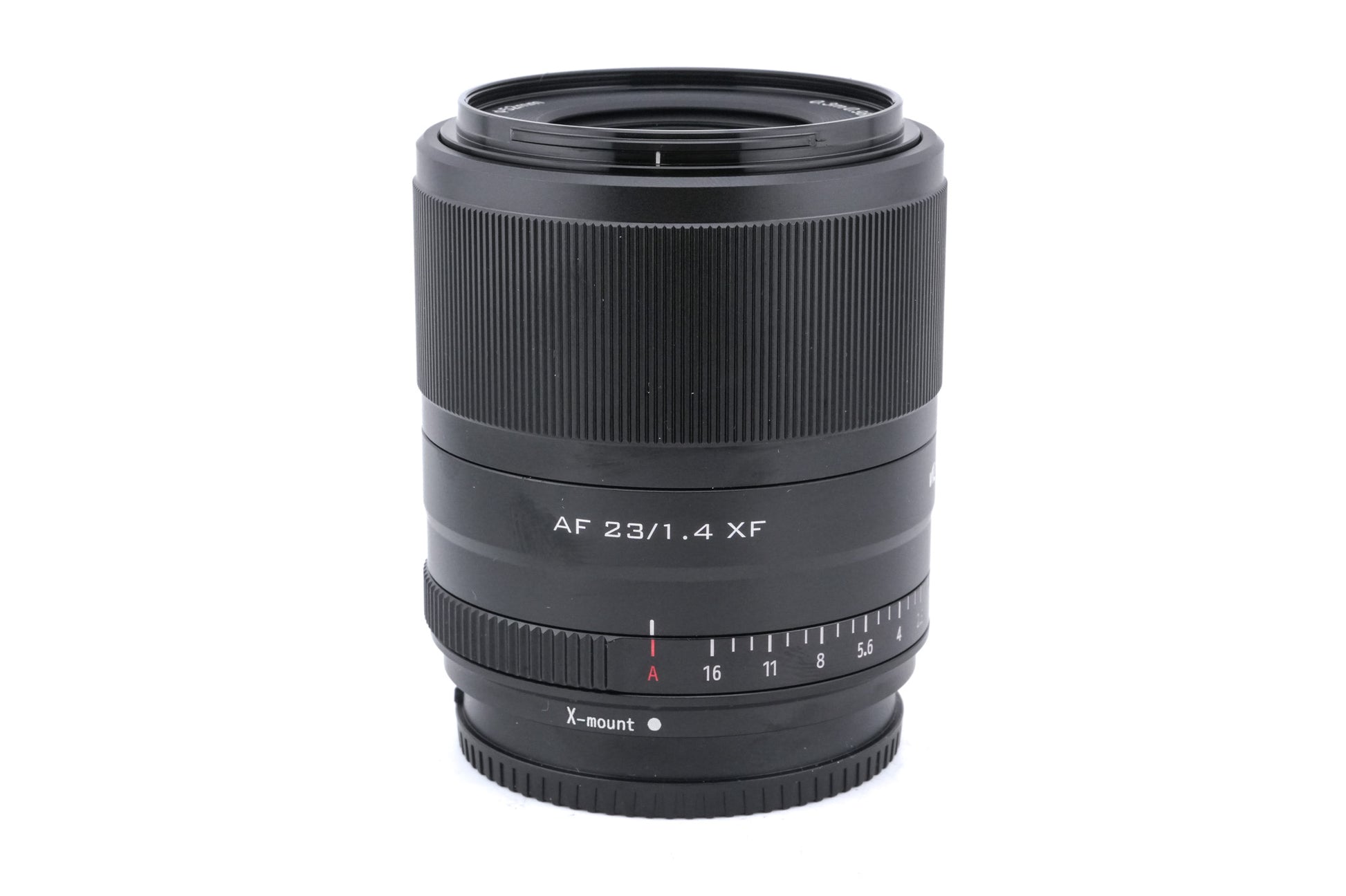 Autofocus wide normal lens made for Fujifilm X-mount mirrorless cameras by Viltrox. It has a de-clicked aperture ring. Metal body available in black.