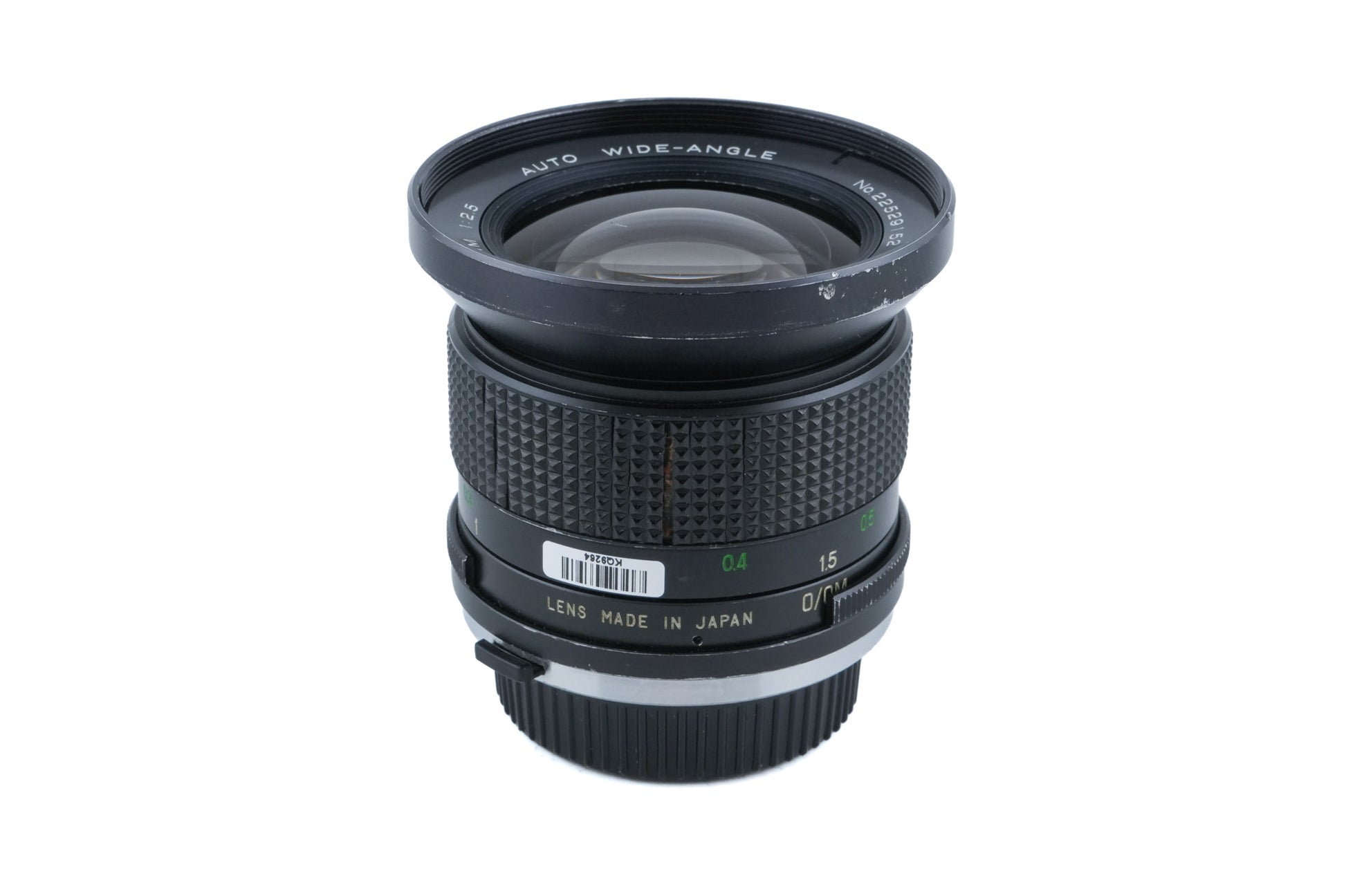 Manual focus wide lens made for Olympus OM-mount 35mm SLR cameras by Vivitar. Metal body available in black.