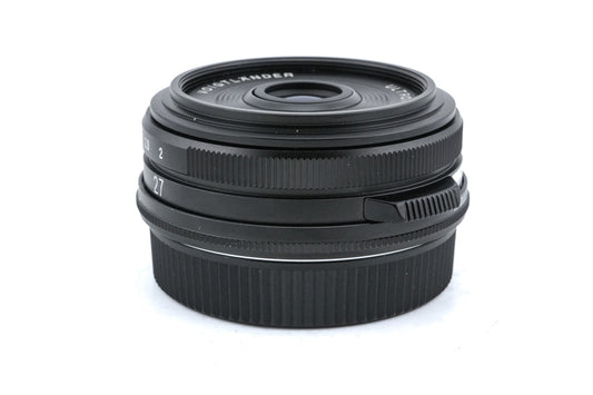 Manual focus normal lens made for Fujifilm X mount digital mirrorless cameras by Cosina Voigtländer. It is designed for APS-C-sized sensors and gives the equivalent field of view to a 40.5mm lens on full frame/35mm. Metal body available in black.