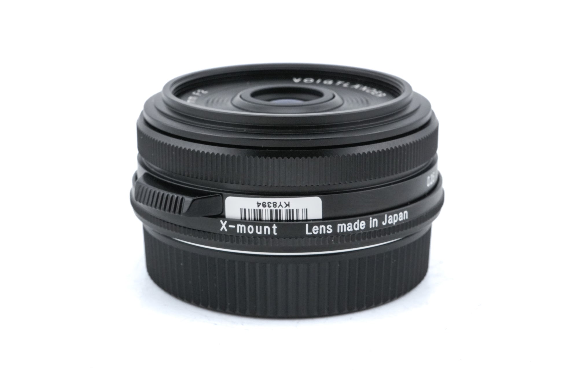 Manual focus normal lens made for Fujifilm X mount digital mirrorless cameras by Cosina Voigtländer. It is designed for APS-C-sized sensors and gives the equivalent field of view to a 40.5mm lens on full frame/35mm. Metal body available in black.