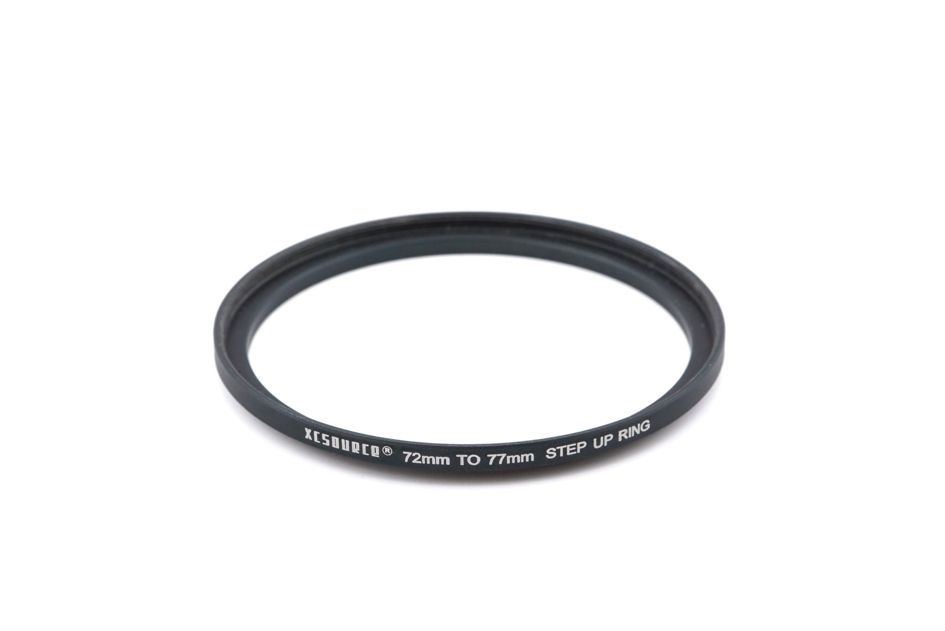 Step-up ring made by XCSource- Allows 77mm filter to be used on lenses with 72mm filter threads. Metal body available in black.