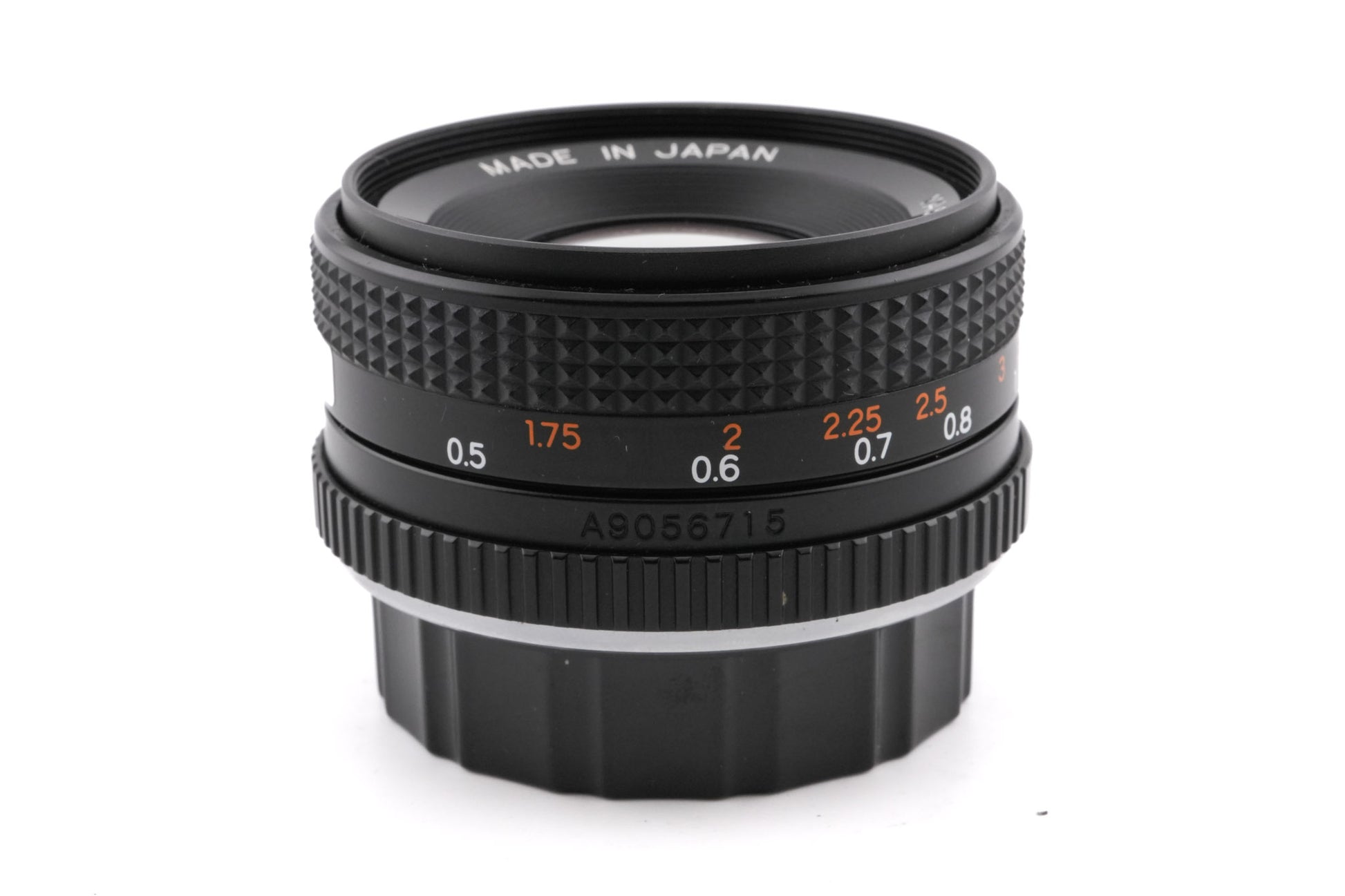 Manual focus normal lens made for Contax/Yashica mount SLRs by Yashica. This ML lens is multicoated. Metal body available in black.