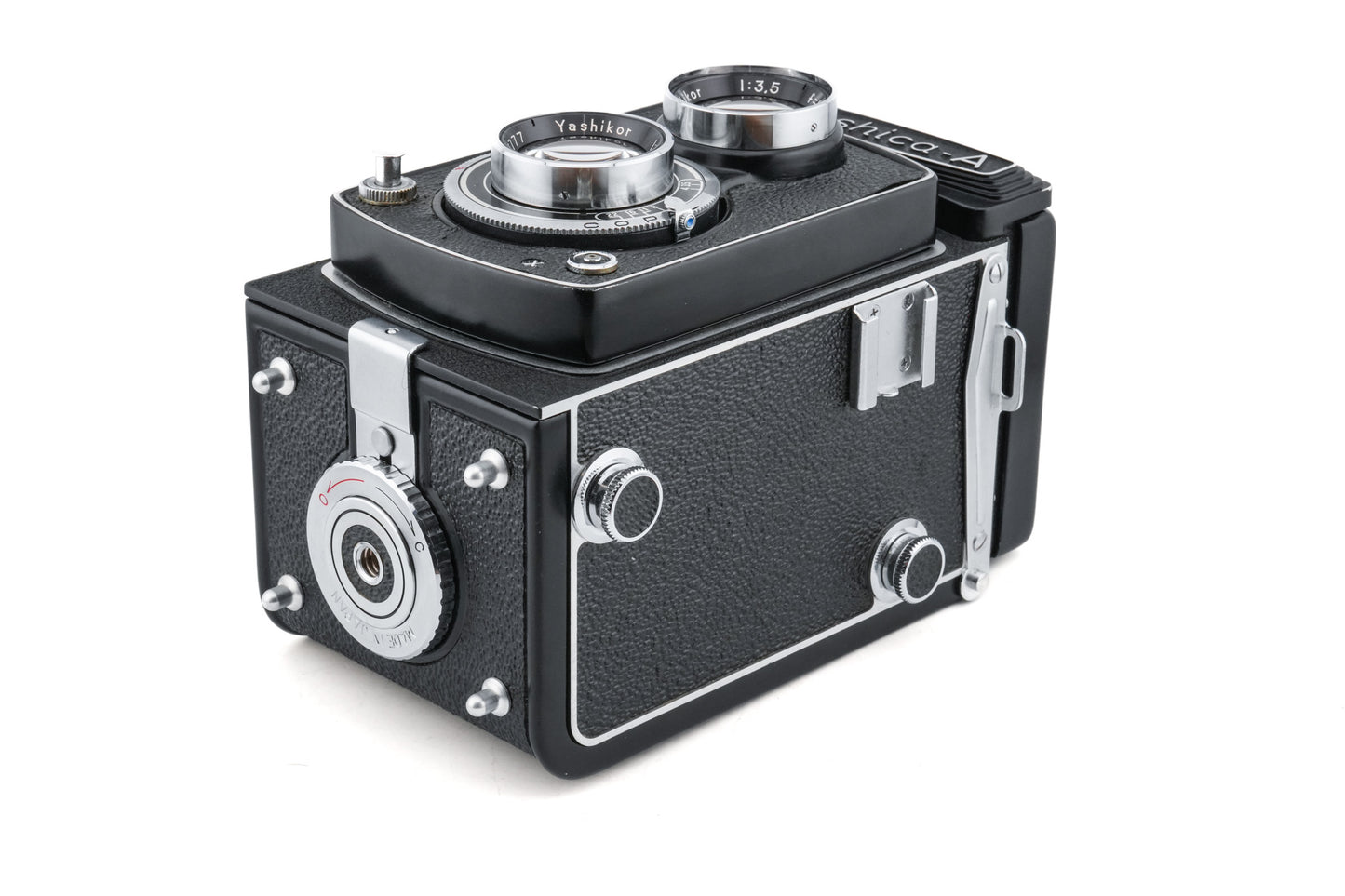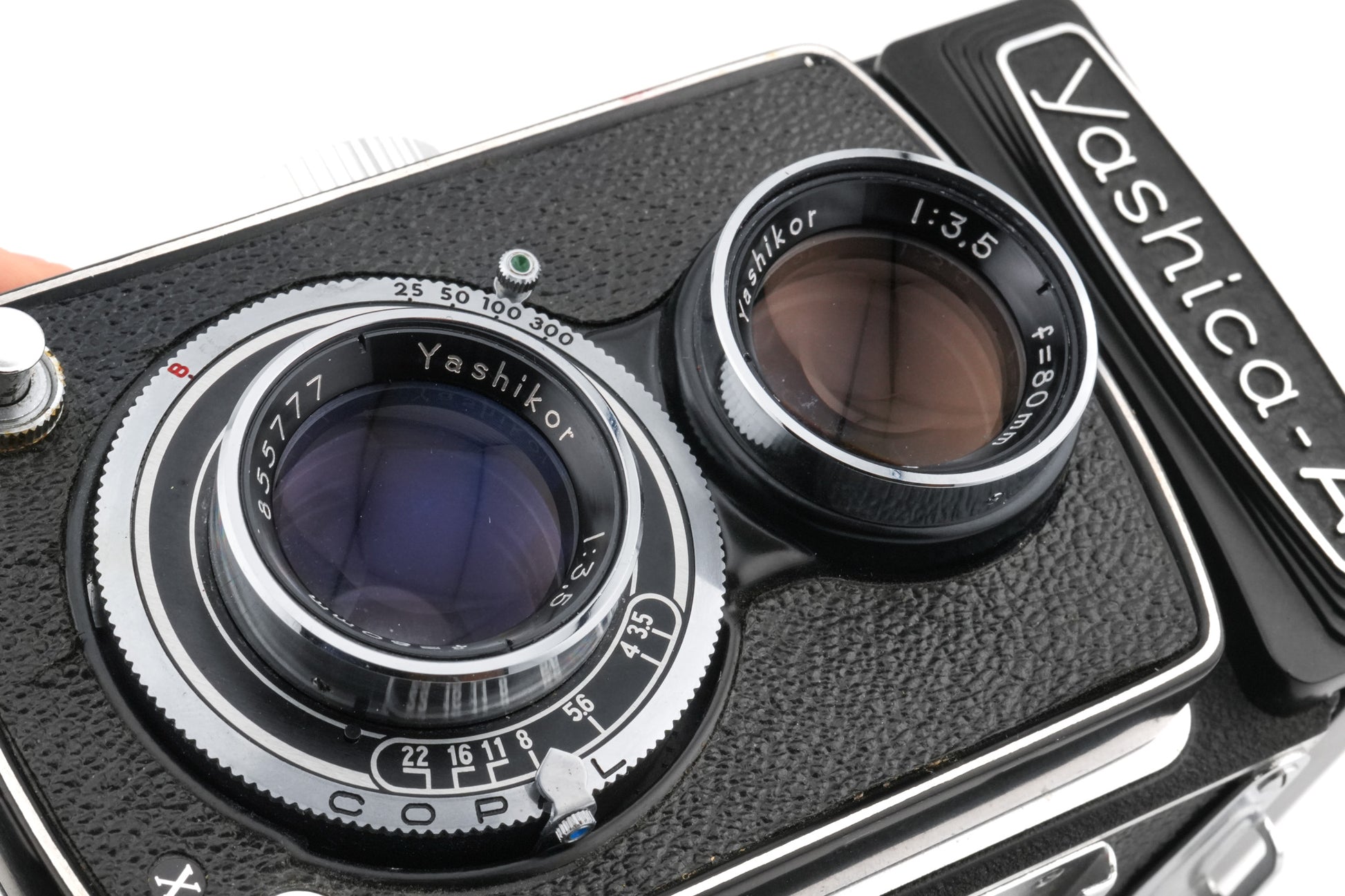 - Taking lens: Yashica 80mm f3.5 Yashikor (3 elements, 3 groups)