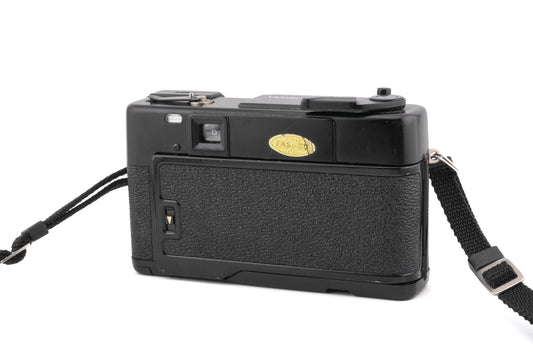 Autofocus 35mm point-and-shoot camera released by Yashica. It uses a passive rangefinder-style system to assign one of 4 focus zones. The focus can be locked with a switch on the front. Film advance & rewind is manual. Plastic body available in black.