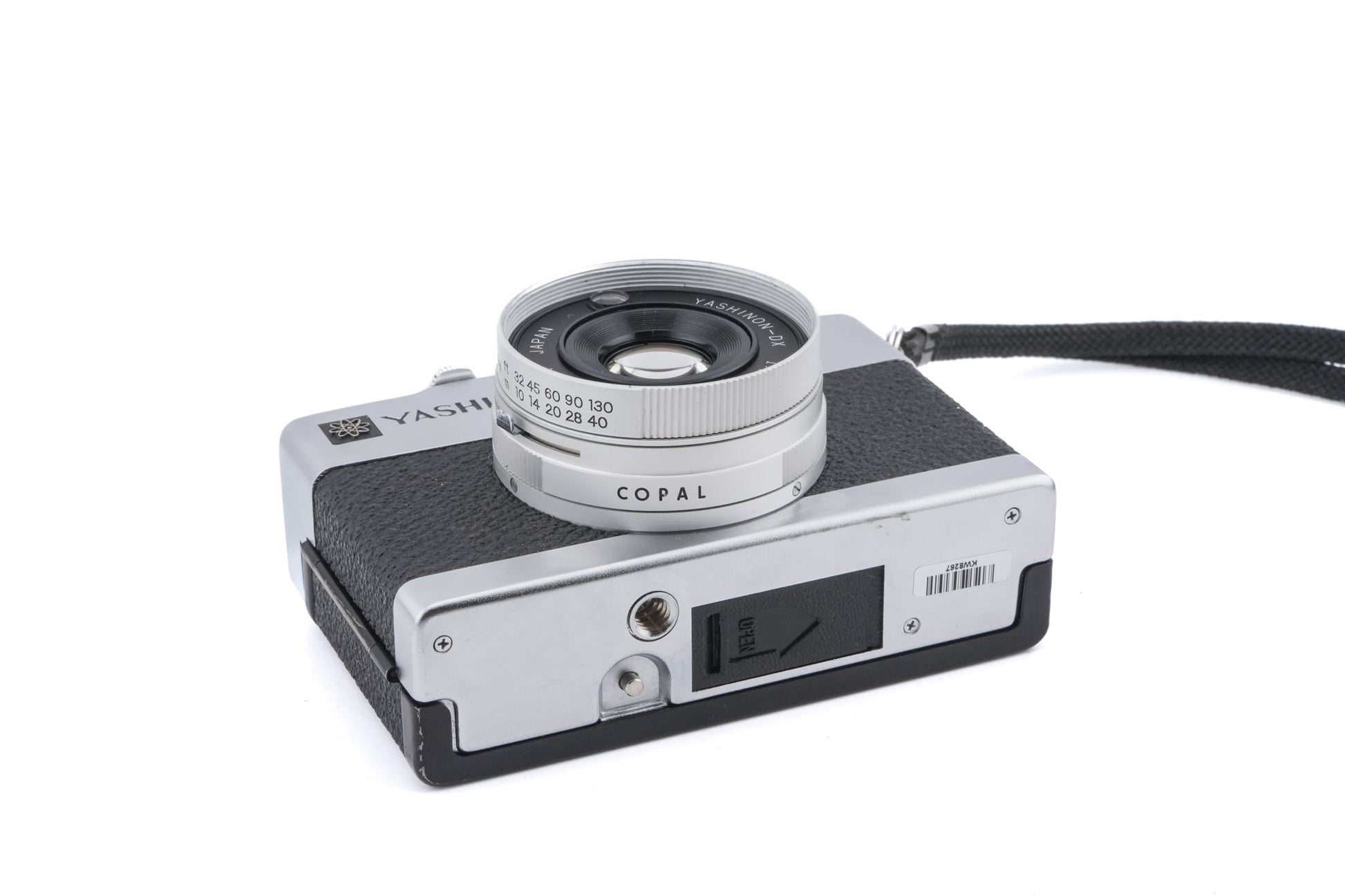 Manual focus 35mm compact camera introduced in 1972 by Yashica. It has electronically controlled aperture priority. Metal body available in black and silver.