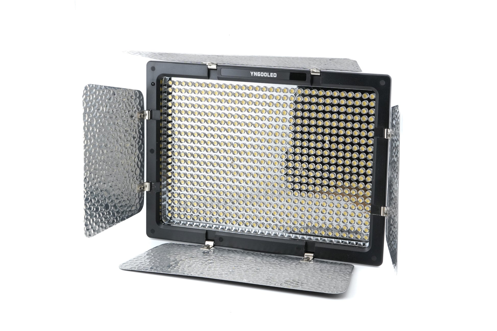LED video light made by Yongnuo. It features 300 lamps for 3200k and another 300 lamps for 5600k color temperature. It comes with a orange and diffusion gel plates. Plastic body available in black.